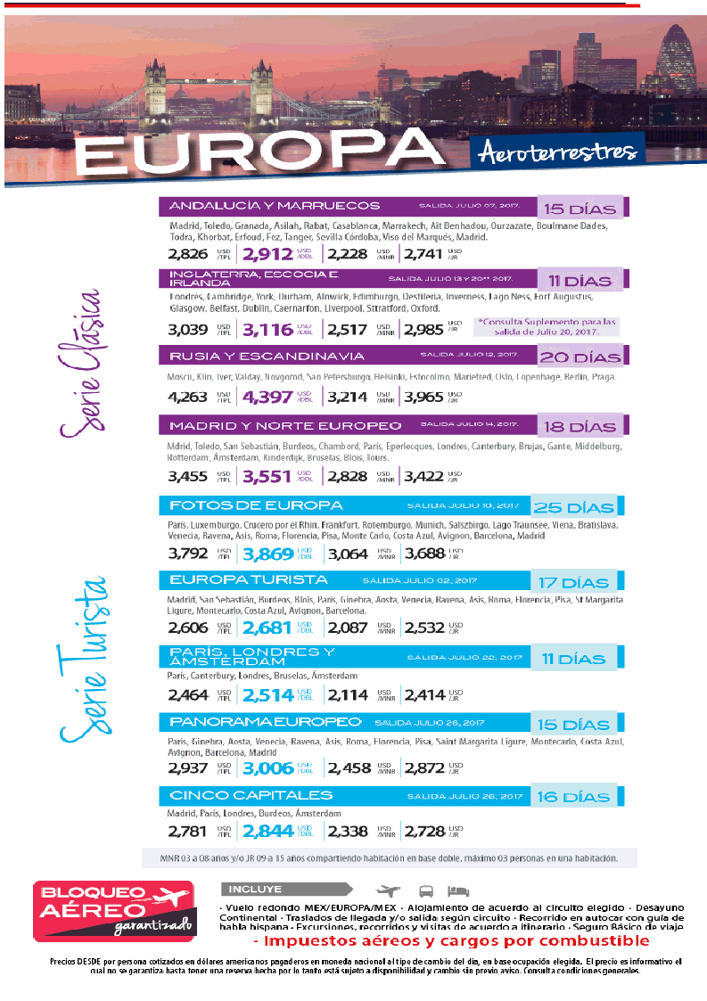 *PAQUETES Y CIRCUITOS EUROPA HASTA 15 DIAS