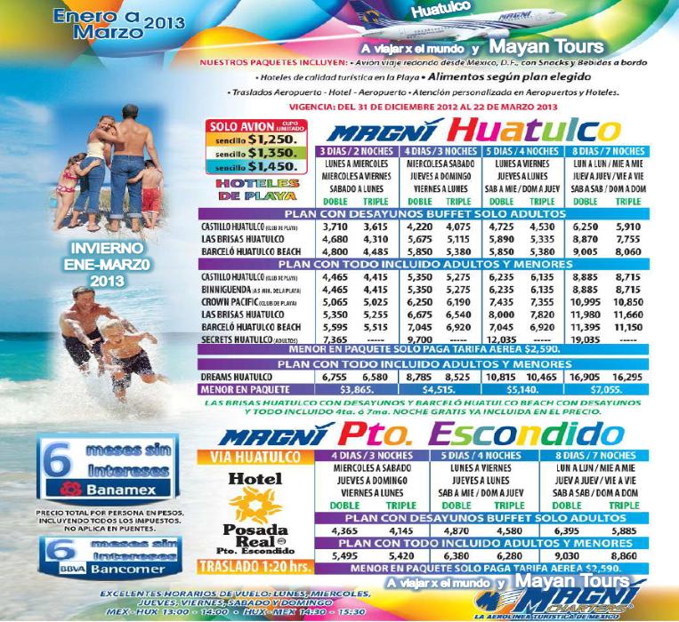 MAGNIHARTERS PUERTO ESCONDIDO 2x1 , 4a y 7a noche gratis en hoteles BARCELO Y 6 MESES SIN INTERESES...,,AVION Y PAQUETES A CANCUN,HUATULCO,IXTAPA