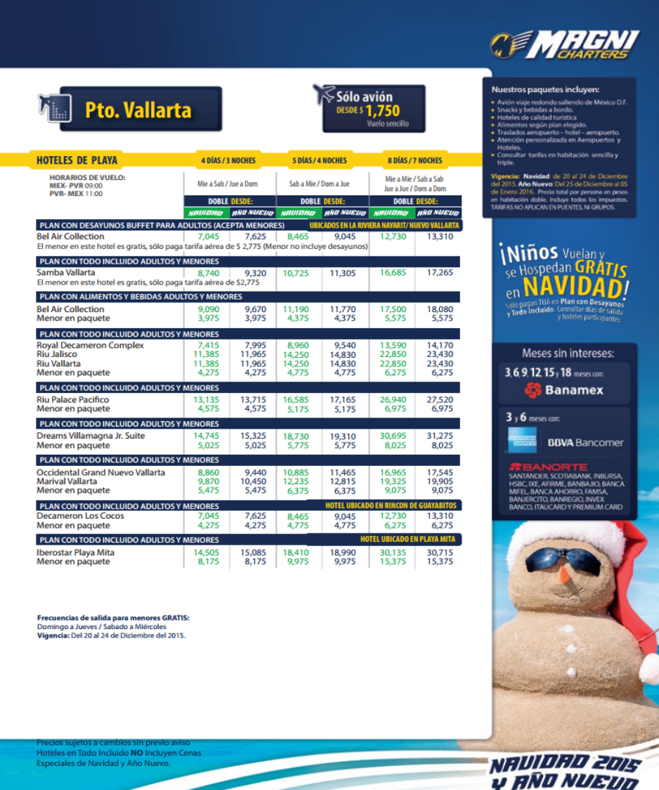 MAGNIHARTER VALLARTA 201 navidad y año nuevo 4 , 4a y 7a noche gratis en hoteles BARCELO Y 6 MESES SIN INTERESES...,,AVION Y PAQUETES A